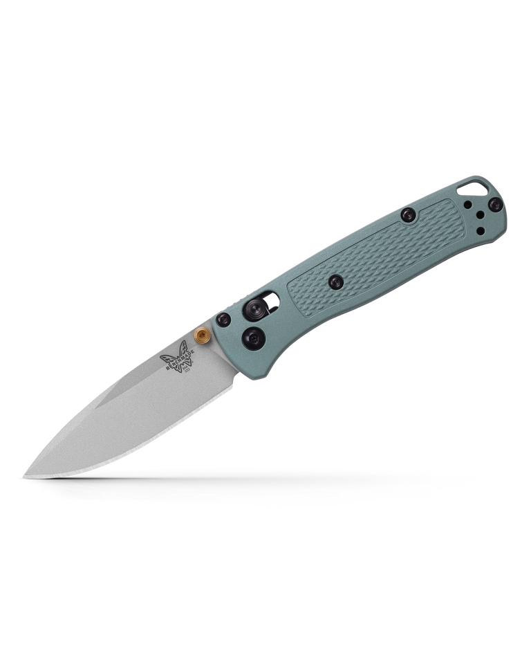 What began as a quest to perfect the all-purpose outdoor utility folder has evolved into a handy solution for life’s daily tasks and chores, and the 533SL-07 Mini Bugout® is the compact EDC built for daily pocket carry and style. Lightweight, slim, and stylish, yet incredibly strong and durable for its size, the 533SL-07 Mini Bugout® seasonal color variant is an instant eye-catcher in easy-to-maintain CPM-S30V premium blade steel with a Crushed Silver Cerakote® finish and outdoor inspired Sage Green Grivory® handle scales with gold anodized thumb stud for that distinctive Benchmade pop of color.