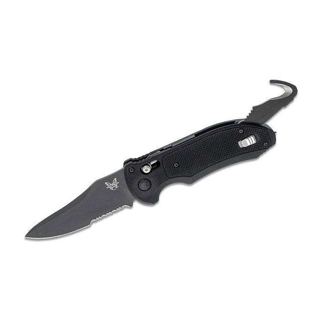 The dynamic sheepsfoot Triage® packaged in high-strength aluminum with the speed and efficiency of AXIS® Auto and an automatic opening hook. Designed and manufactured in the USA with Austrian blade steel.