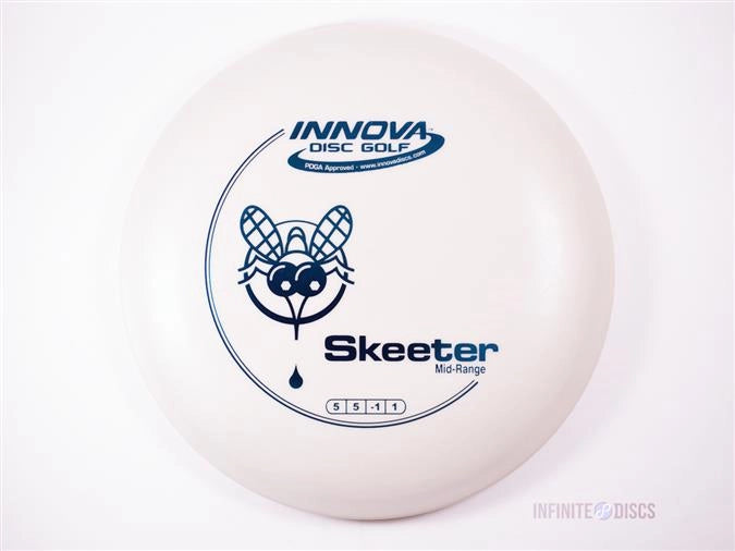The Innova Skeeter is one of the straightest flying golf discs on the market. This is a small diameter disc that works well for players of all skill levels. If you're looking to squeeze down a narrow tunnel, reach for the Skeeter. 5/5/-1/1. DX is an inexpensive, basic plastic. It has good grip, but wears more easily than premium plastics.