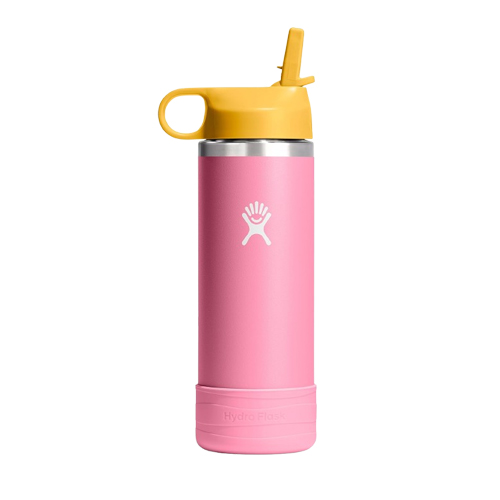 • 18 OZ KIDS DAHLIA PINK WATER BOTTLE: The Hydro Flask Kids 18 oz vacuum insulated stainless steel water bottle keeps drinks cold for up to 24 hours. With a colorful, easy-to-clean Straw Cap and cute Bottle Boot, it’s the perfect kids water bottle. Ages 3+.