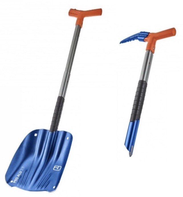 In this latest iteration of an ORTOVOX classic we’ve used the most innovative materials available and cutting edge production methods to achieve the best weight-to-rigidity ratio possible. Stabilization ribs and high sidewalls give the anodized blade rigidity, while the integrated shaft socket makes it easy to pack. With the new quick-lock, the blade and the fluted telescoping shaft can be put together in one motion. The new T-Grip Pro is revolutionary. It can be inserted for both right and left-handers – and also facilitates economical clearing. One hand grasps the long grip side, which serves as an ergonomic lever, while the other hand has maximum hold on the shaft’s rubber-coated grip zone.