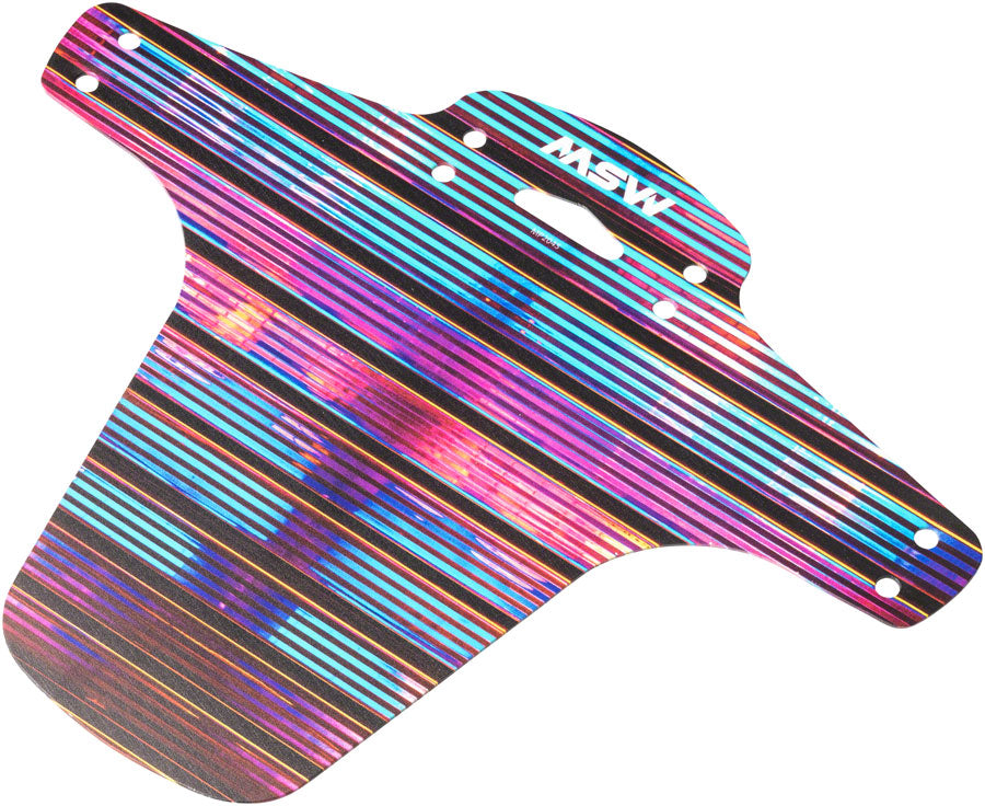 "Easy to install and available in various colors and designs, the MSW Splash Pad Front Fender won’t let wet weather spoil your ride. Designed for use with a range of bicycle styles and compatible with suspension forks.